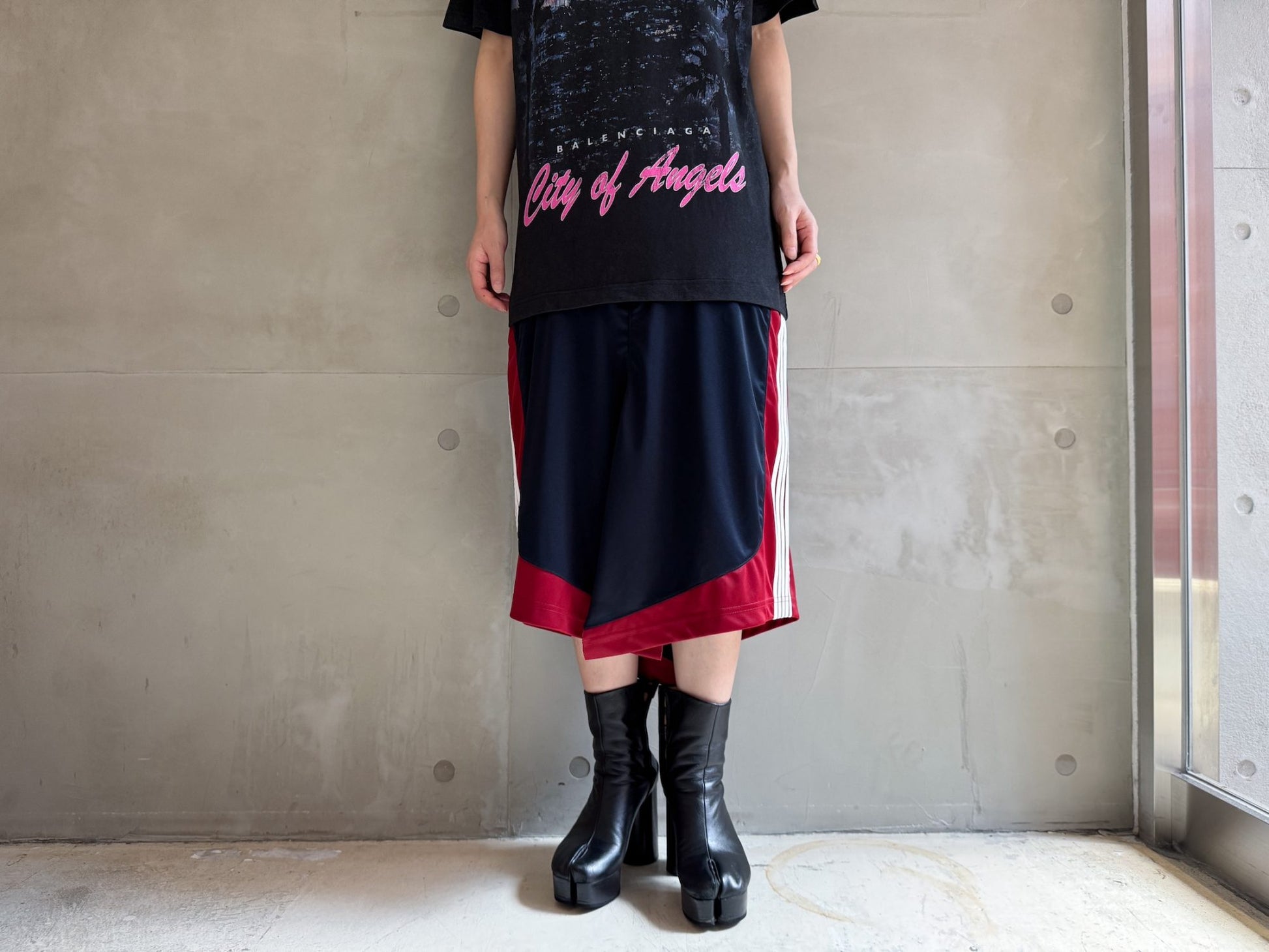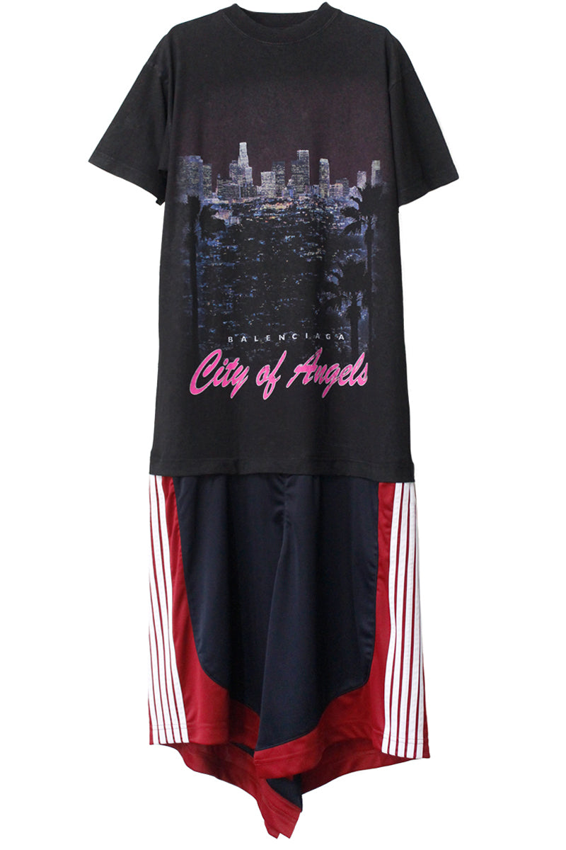 ・Tシャツとトラックパンツ風スカートドッキングワンピース