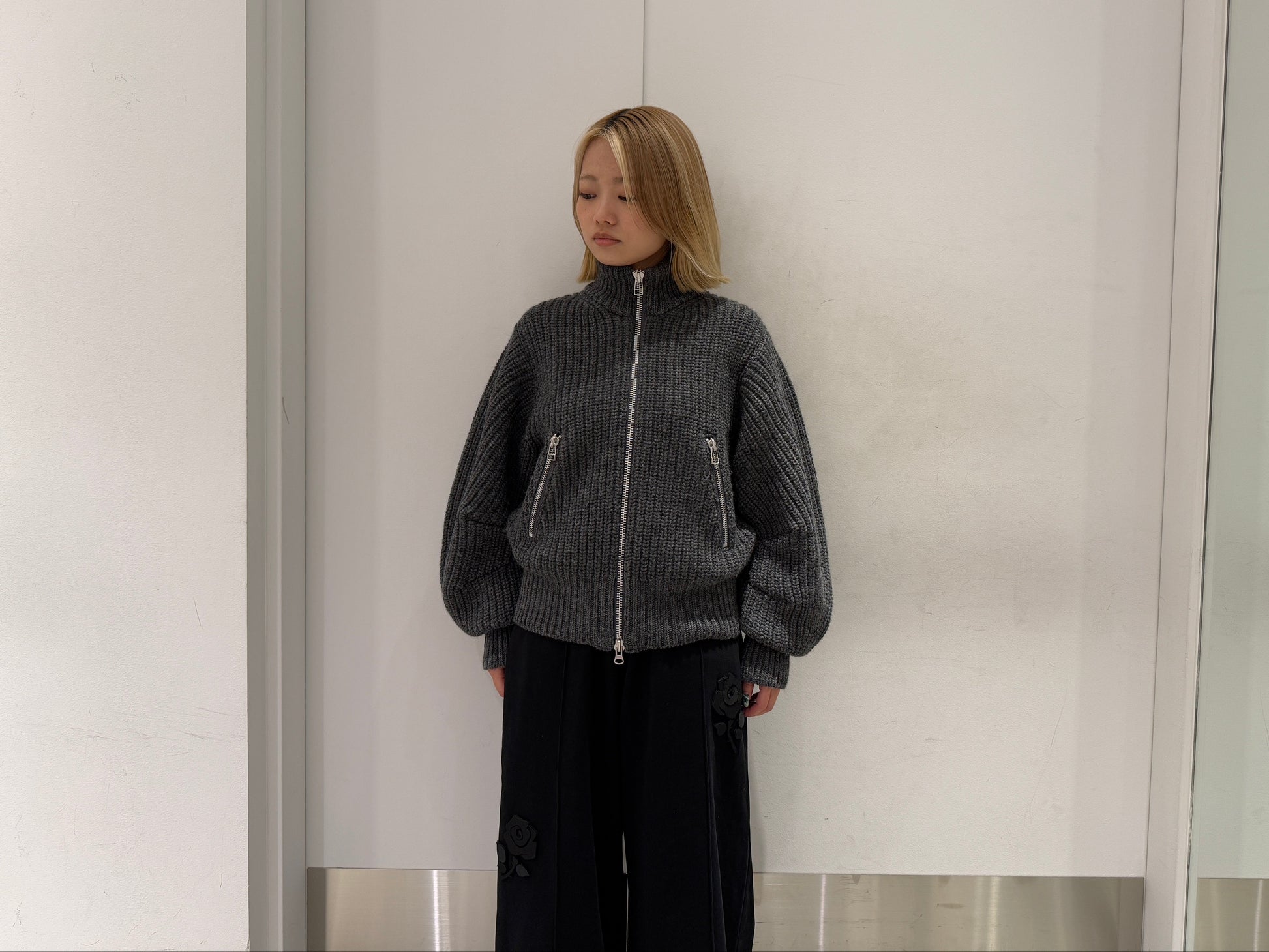 ・ジップカーディガンニット