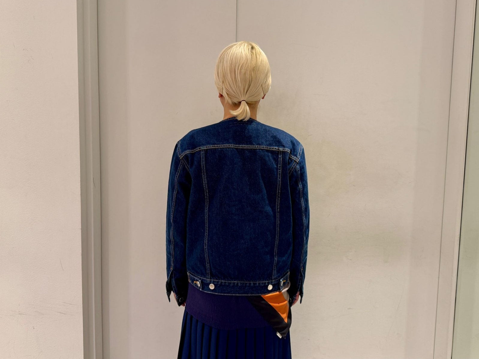 WASHED DENIM COLLARLESS JACKET(UNISEX)